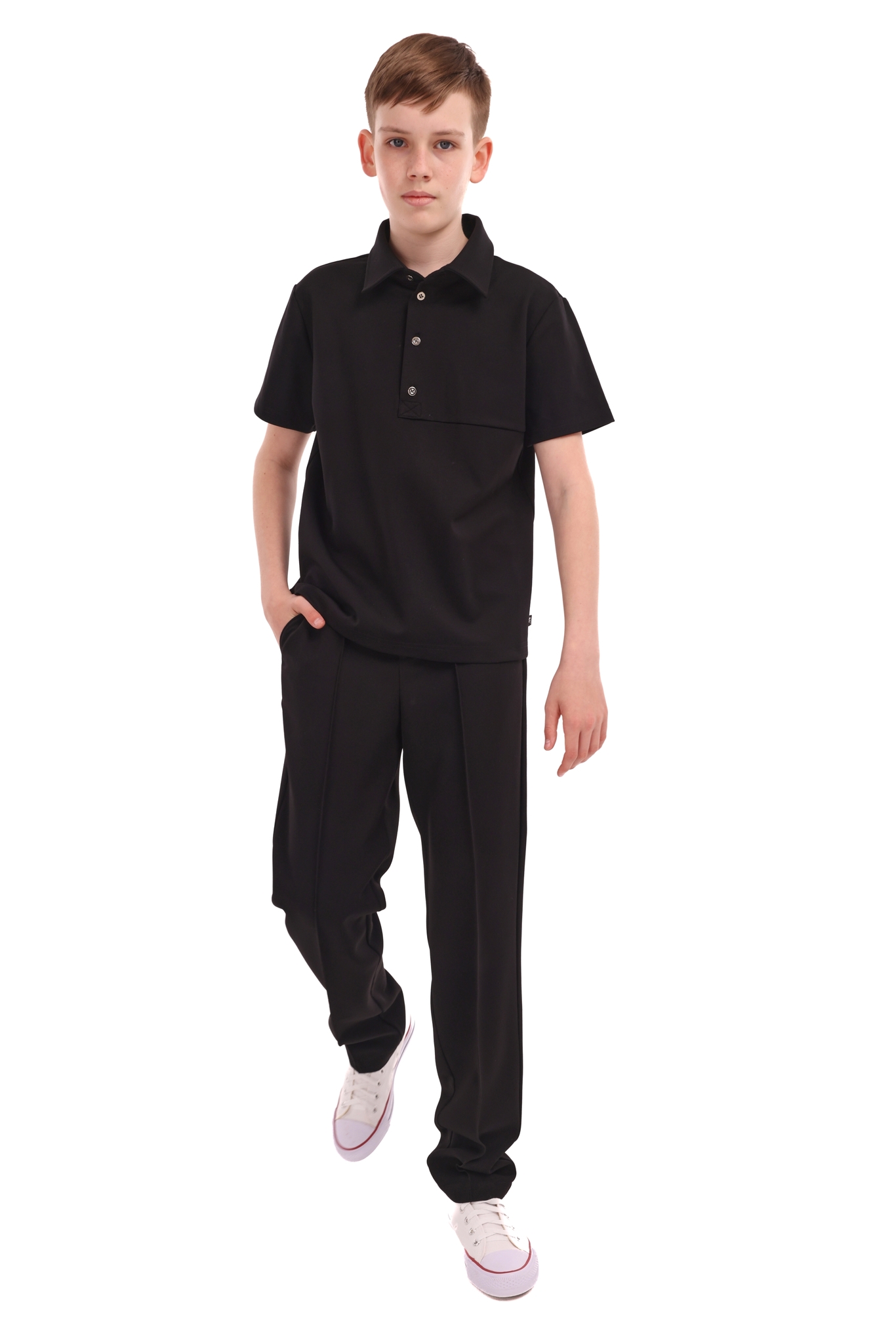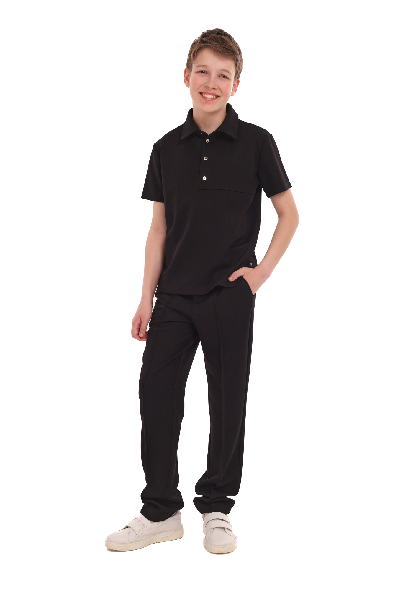 Не широкие и не узкие, с отличной посадкой, идеально сбалансированные классические школьные брюки из костюмки от matematika. В пояс встроена регулировка по ширине талии. По бокам - вместительные функциональные карманы.